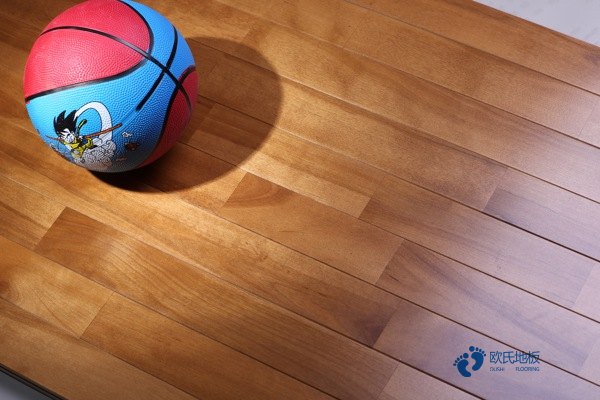 拼接板舞台实木地板单层龙骨结构,体育运动木地板的生产原材料有很多种,其中比较受欢迎的是硬枫木材质。硬枫材质密度大,强度高,耐磨耐冲击,其硬度比红橡高出12%,比白橡高出7%。北纬35度以北的北美地区出产的枫木,由于生长期更短,冬季更长,所以木理细密,不易碎裂,摩擦作用下反倒更加光亮平滑,对冲击力的承受能力极强,因而经久耐磨,而且和各类油漆的作用效果都很好。